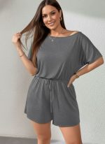 Lovshy Stylish Batwing Sleeve Short Jumpsuit– Effortless Comfort Meets Elevated Style