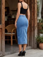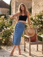 The high-waist, slim-fit silhouette enhances your natural shape, giving you a flattering and perfect fit. Its midi length design provides a modern, classy look that pairs effortlessly with tops, shirts, or crop tops. Whether you’re heading out for a day with friends or dressing up for a casual office look, this skirt delivers a premium and elegant appearance every time.