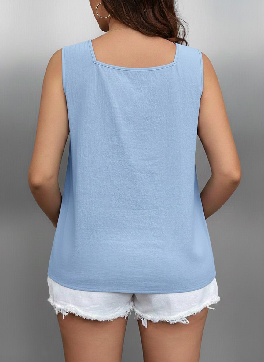 Designed for effortless elegance, this sleeveless top features a modern square neckline that adds a touch of sophistication to your casual look. Crafted from soft, breathable fabric with a smooth textured finish, it offers all-day comfort while keeping you stylish.